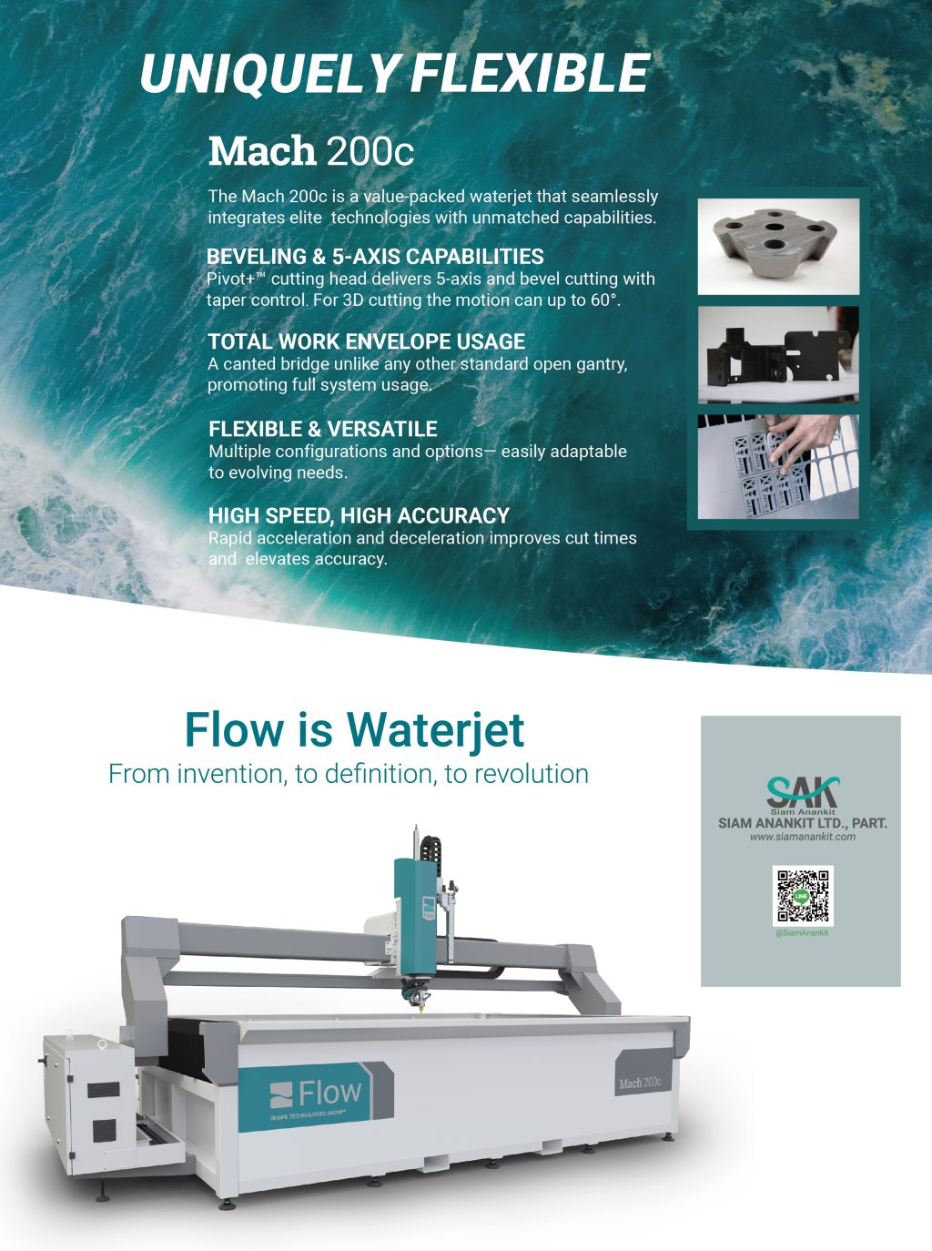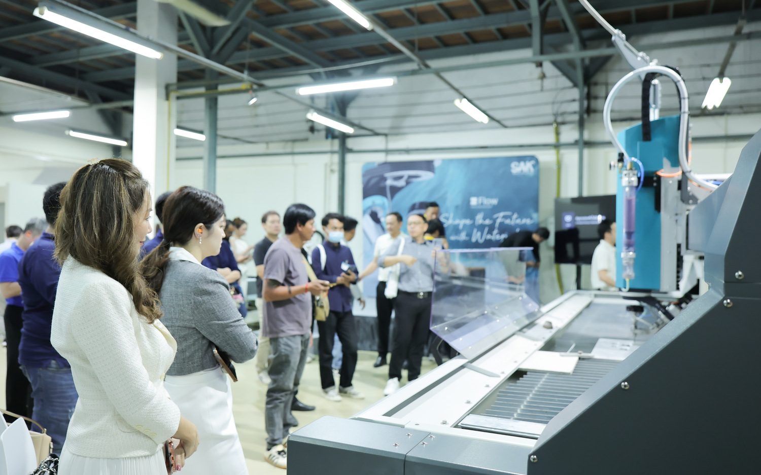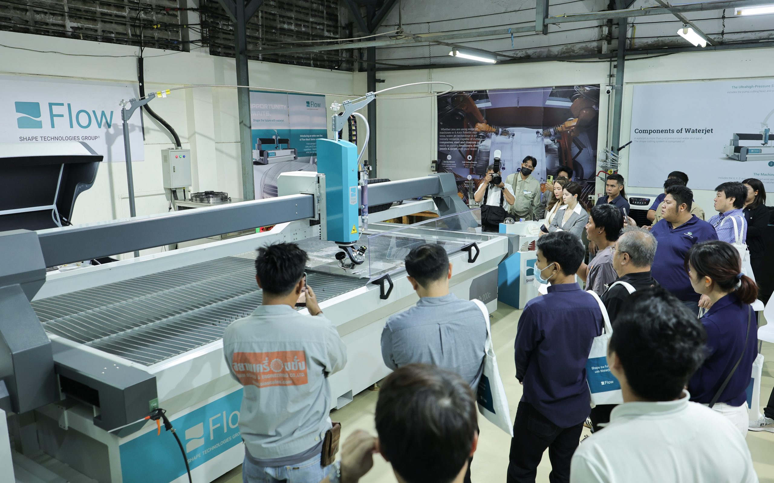 ในงานนี้มีการสาธิตเครื่อง Waterjet รุ่นเรือธง Mach200c Scrics ที่มาพร้อมกับชุดหัวตัด 5 แกน และระบบปั๊มแรงดันสูงล่าสุด MotoJet 50 ซึ่งมีความโดดเด่นด้านความเสถียร ความแม่นยํา พร้อม Software ควบคุมการทํางานแบบ 3D