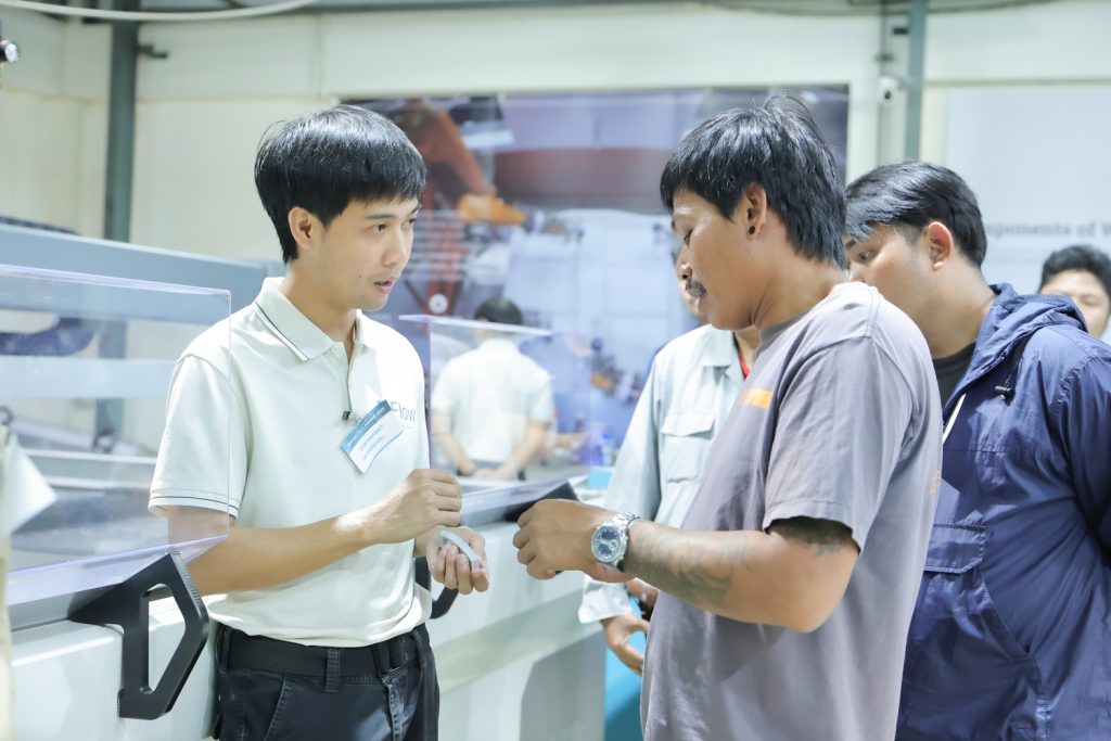 ลูกค้าที่เข้าร่วมงานได้รับคุณค่าทั้งด้านเทคโนโลยีและธุรกิจอย่างชัดเจน โดยในด้านเทคโนโลยี ลูกค้าได้อัปเดตนวัตกรรมล่าสุดจาก Flow เช่น Abrasive Recycling System บนเครื่องซีรีส์ NX PRO และ FlowXpert Infinity Software สําหรับงาน 2D/3D รวมถึงการชม Live Demo เครื่องตัดวอเตอร์เจ็ทรุ่นใหม่ Mach200c ซึ่งช่วยเปิดมุมมองการใช้งานที่หลากหลายยิ่งขึ้น