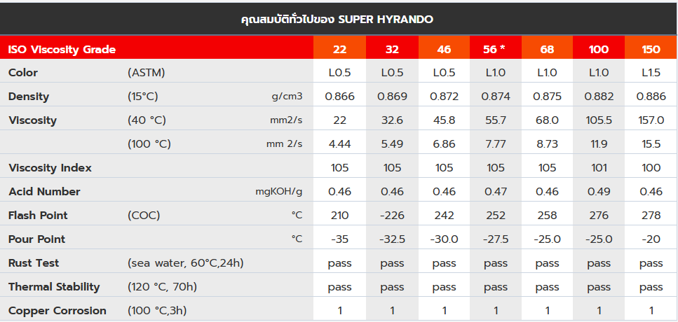 💡คุณสมบัติทั่วไปของ น้ำมันไฮดรอลิก Super Hyrando