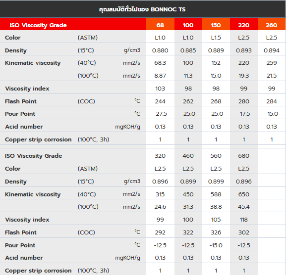 💡คุณสมบัติทั่วไปของ น้ำมันเกียร์ Bonnoc TS