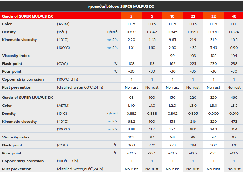 💡คุณสมบัติทั่วไปของ น้ำมันอเนกประสงค์ Super Mulpus DX