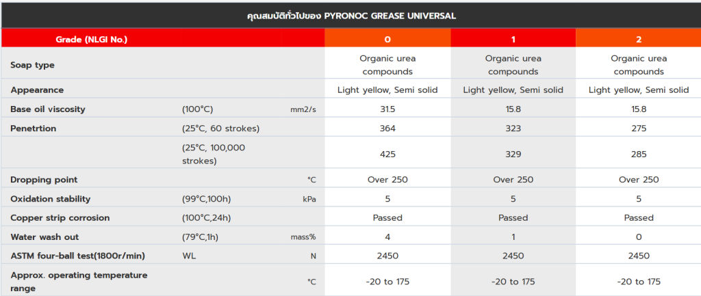 💡คุณสมบัติทั่วไปของ จาระบีอเนกประสงค์ Pyronoc Grease Universal
